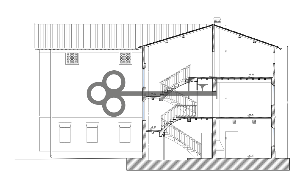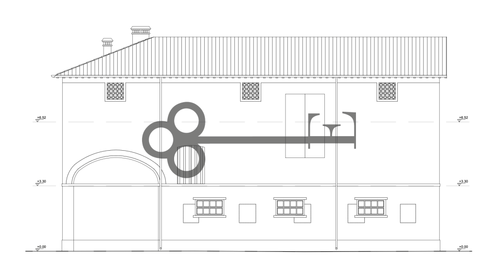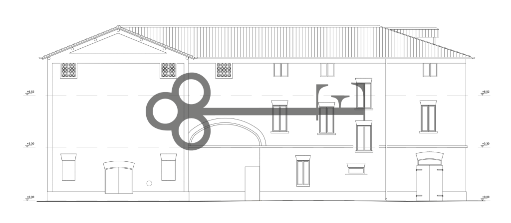 PRESANTA L’ARCHITETTURA TIPICA DEI RUSTICI MODENESI, CHE PREVEDEVANO L’ABITAZIONE COLLEGATA A STALLA E FIENILE SOPRASTANTI, TRAMITE UN GRANDE PORTICATO.