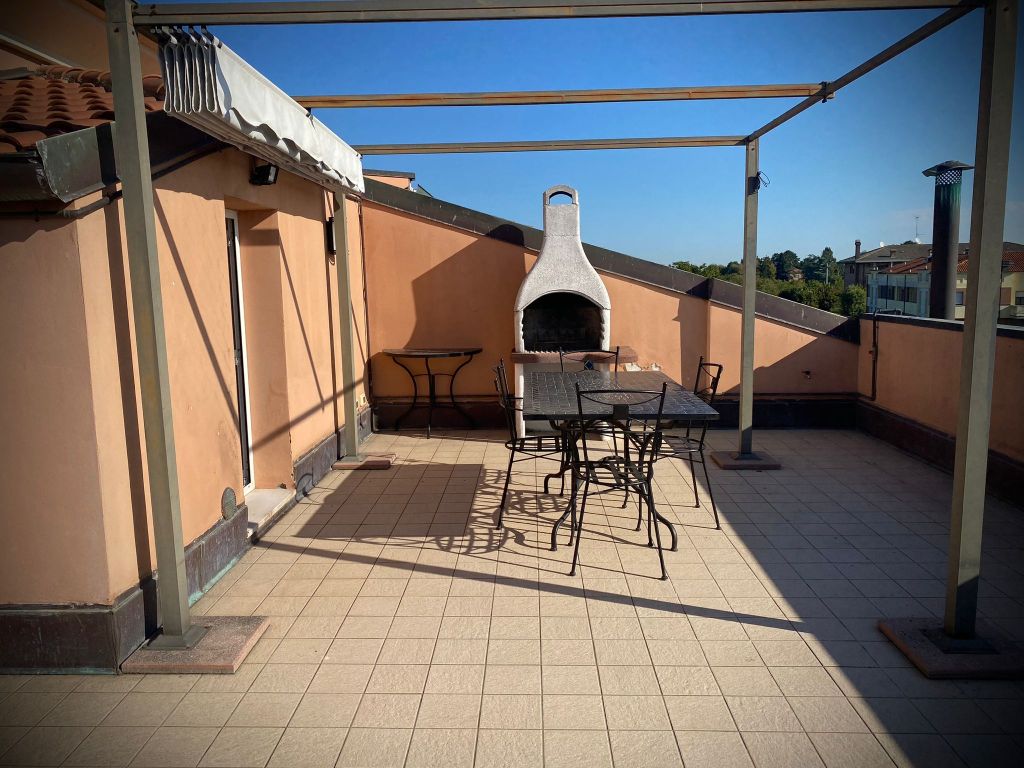 RIF 102 MODENA – Mulini Nuovi. In zona verde a pochi minuti dal centro di Modena, ma comoda all’ingresso della tangenziale, ben servita e ben collegata ai trasporti pubblici, Proponiamo in Vendita MODERNO ATTICO in ottime condizioni, abitato dall’origine da un’unica famiglia. LIBERO SUBITO. L’immobile, posto all’ULTIMO PIANO di una piccola e recente palazzina con ASCENSORE, si sviluppa su due livelli. Al PRIMO troviamo la Zona GIORNO con ingresso, salotto e cucina abitabile; sempre allo stesso piano si trova la zona notte composta da 3 camere e 2 bagni. Le peculiarità che rendono l’appartamento unico nel suo genere, sono gli spazi esterni, balconi e terrazzi, ampi, riparati e con affacci sul verde circostante, che ne garantiscono la privacy. Ogni stanza della casa ha uno o più accessi alle terrazze, ciò rende gli ambienti aperti e molto luminosi. Salendo al piano superiore entriamo nello studio a sbalzo sulla sala, e attraverso un piccolo corridoio si raggiunge la lavanderia, con servizio finestrato. Infine il TERRAZZO PANORAMICO con zona barbecue e predisposizione per impianto di irrigazione, l’angolo più affascinante dell’immobile, sfruttabile durante la maggior parte dell’anno adiacente a piccolo angolo cottura interno.