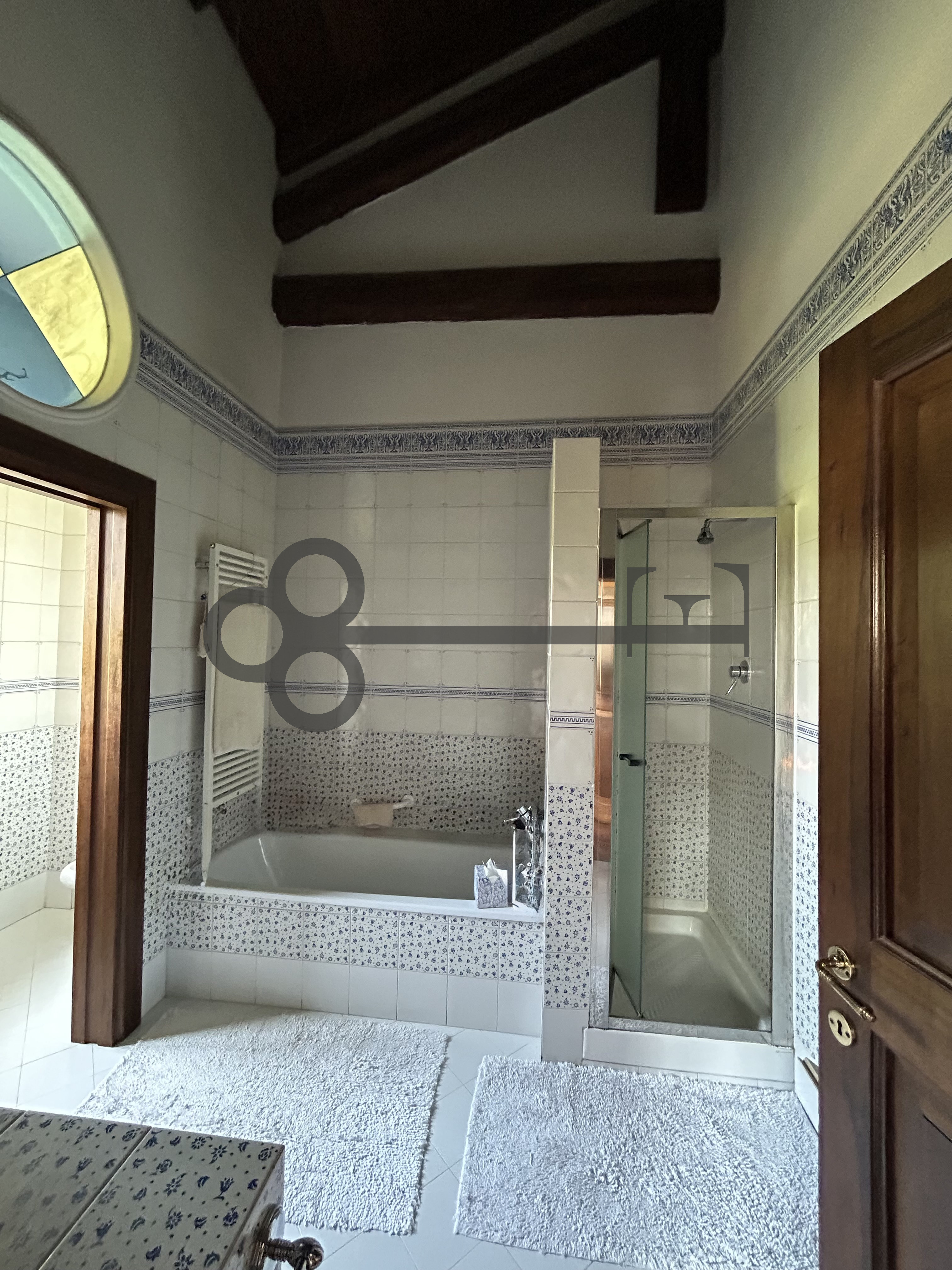 TRAMITE UNA MERAVIGLIOSA SCALA ELICOIDALE DI IMPORTANTI DIMENSIONI SI ACCEDE AL PIANO PRIMO DOVE TROVANO POSTO QUATTRO CAMERE DA LETTO MATRIMONIALI, TRE BAGNI CON DOCCIA O VASCA OLTRE AD UNA CABINA ARMADI DI GENEROSE DIMENSIONI. I SOFFITTI, IN LEGNO CON TRAVI A VISTA, SONO ALTISSIMI E IL PARQUET LO TROVIAMO IN TUTTE LE STANZE.